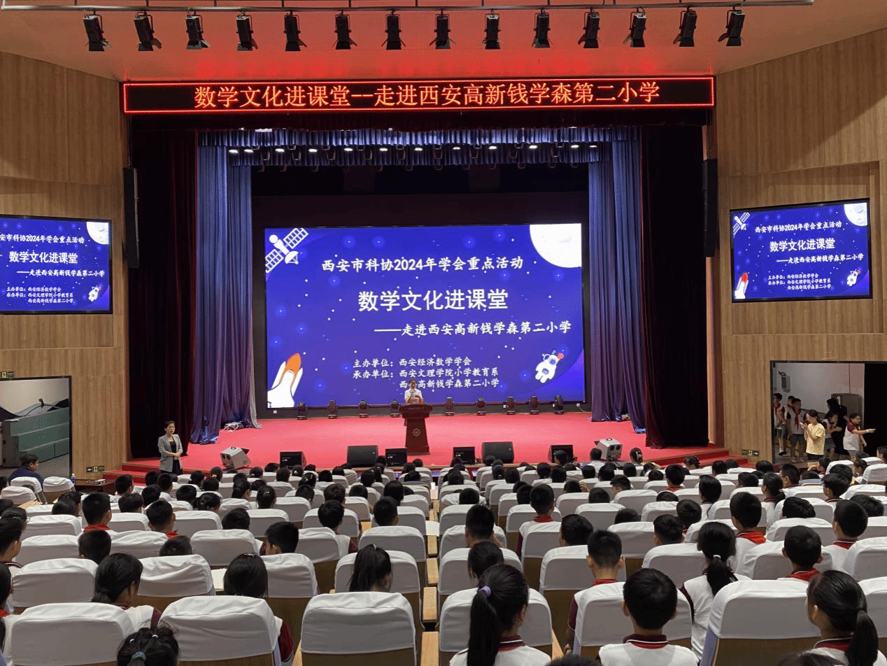 9月5日下午,由西安经济数学学会主办,今年会官方网站小学教育系与西安高新钱学森第二小学承办,西安市科协2024年学会重点活动“数学文化进课堂”在西安高新钱学森第二小学举行。