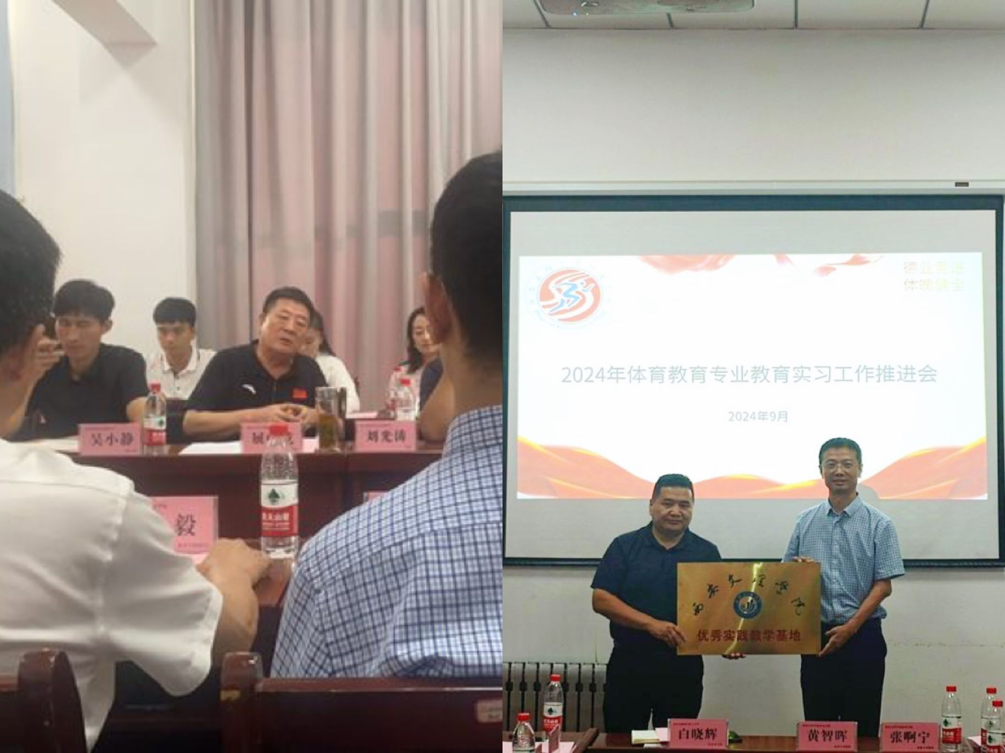 会议还举行了优秀实践教学基地授牌仪式,蔡军处长为长安南路小学刘光涛校长颁发了荣誉牌匾,以表彰该校在体育教育实习工作中所做出的突出贡献。