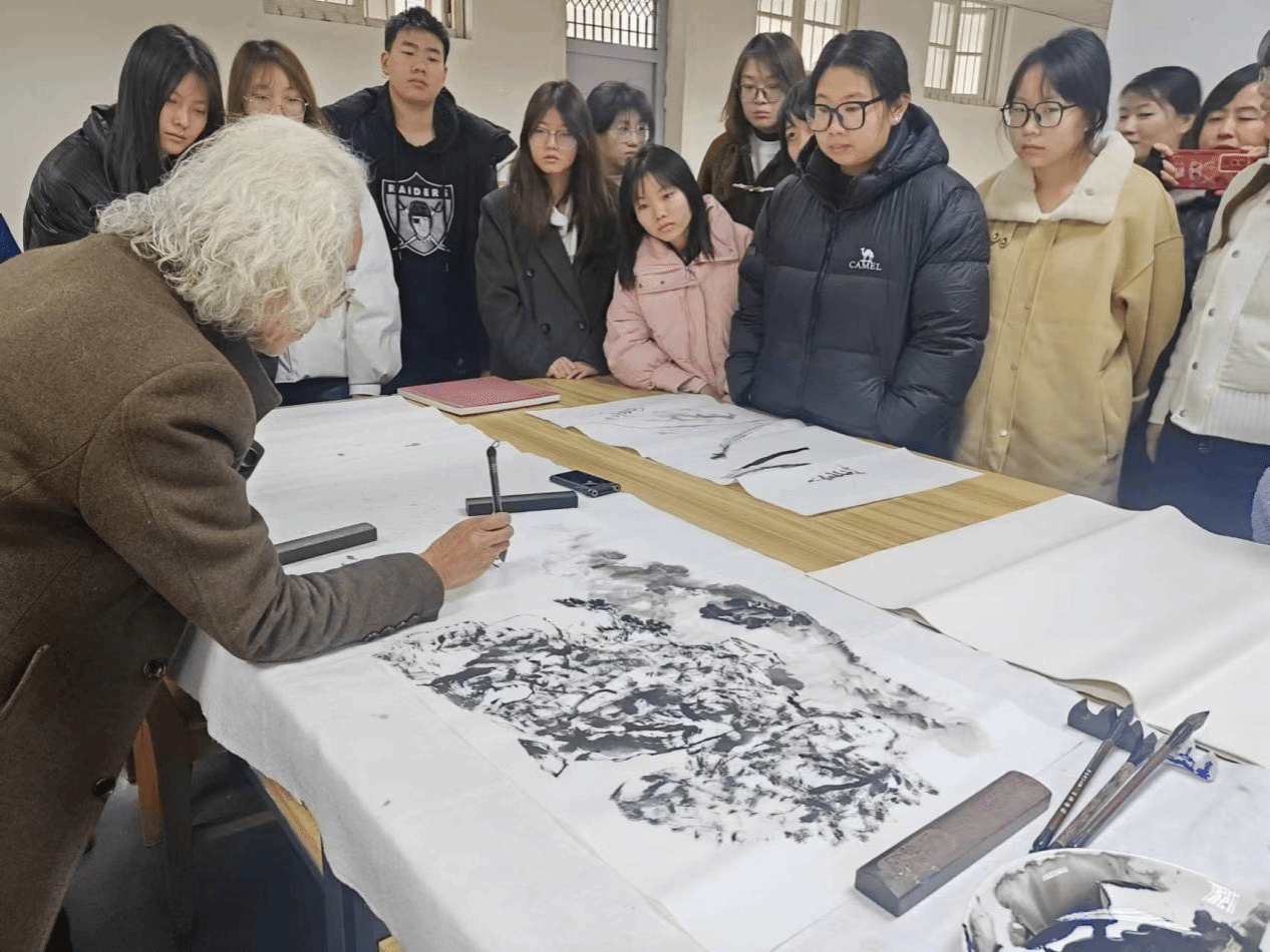 为了贯彻习近平总书记关于关心下一代工作的重要指示批示精神,按照中省市《关于加强新时代关心下一代工作委员会工作的意见》文件要求,学校关工委、离退休党总支在美术与设计学院的大力支持下,于12月5日上午邀请特聘教授、著名画家马继忠老师给美术与设计学院美术学2022级二班的学生传授国画技艺。