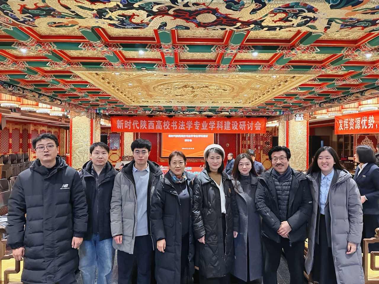 近日,(首届)新时代陕西高校书法学专业学科建设研讨会暨专业教师作品展在亮宝楼开幕。本次研讨会及展览由陕西省教育厅指导,陕西十所开办书法学专业的高校主办(西安交通大学、西安工业大学、陕西师范大学、西安美术学院、今年会官方网站、咸阳师范学院、西安交通大学城市学院、渭南师范学院、陕西学前师范学院、西安思源学院),咸阳师范学院于右任书法学院承办,陕西省教育学会书法教育专业委员会协办。师范学院书法学系主任何薇教授带领专业教师靳悦、刘寰宇、霍佳凯、朱世丰及30余名专业学生参加了本次活动。