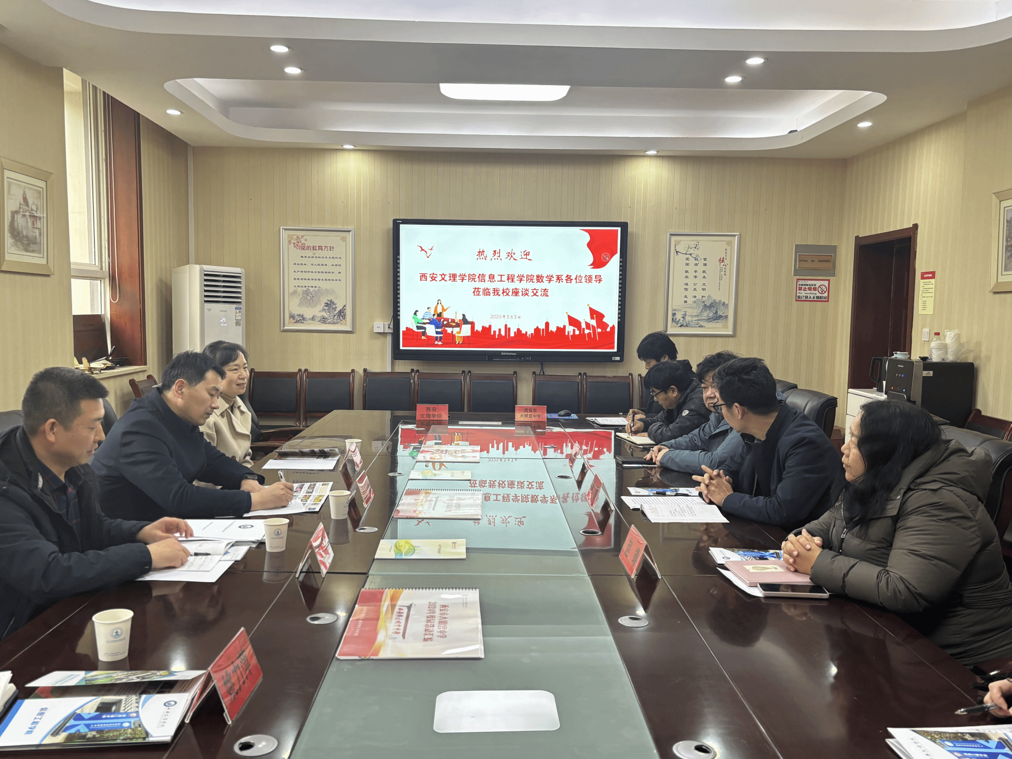 3月3日,信息工程学院院长陈广锋一行四人,赴大明宫中学举行教学实践基地挂牌仪式。大明宫中学校长娄疆(1997级数学专业校友)、副校长史磊(1999级数学专业校友)、赵婧及97级数学专业2名校友教师代表对学院一行人的到来表示了热烈欢迎。