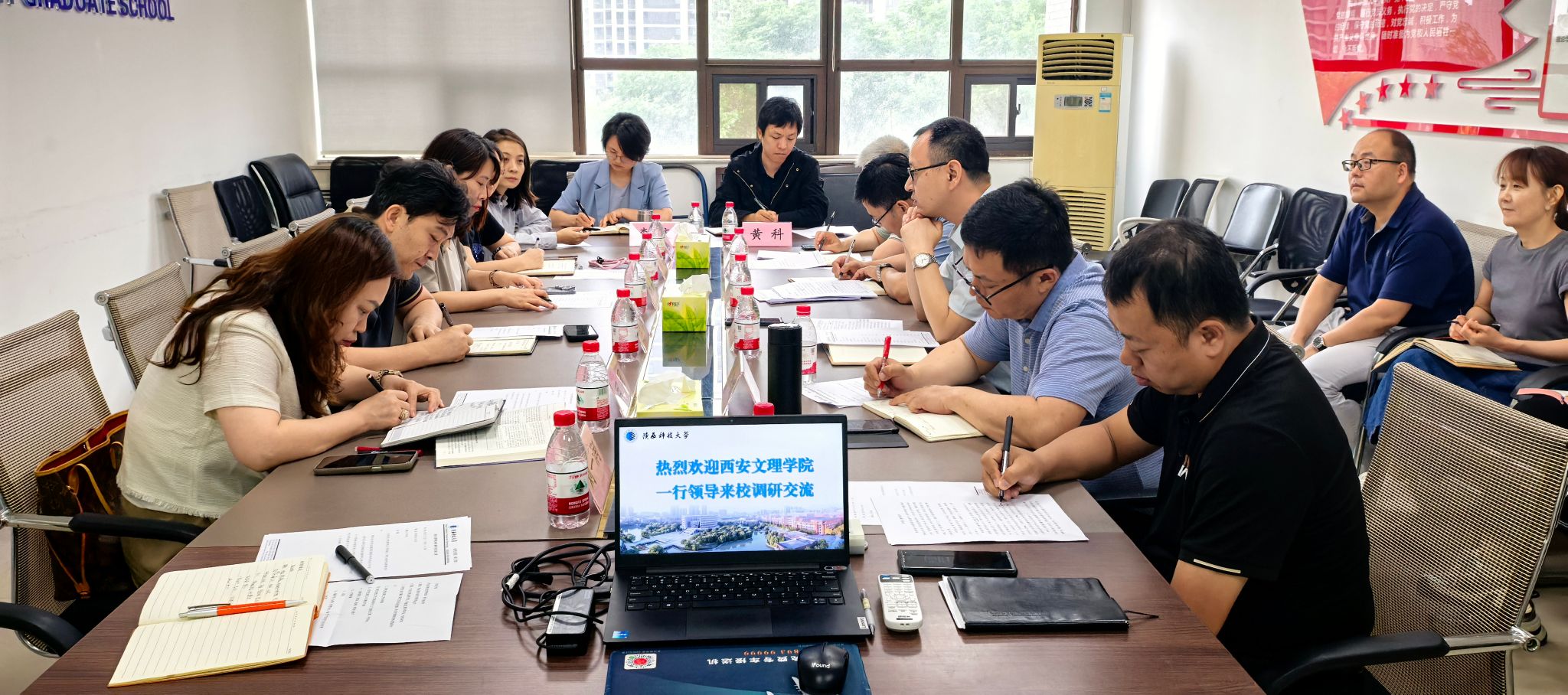 5月22日上午,校党委委员、研究生院院长韦炜一行8人赴陕西科技大学研究生院开展调研交流。陕西科技大学研究生院院长强涛涛,副院长吴鲁阳、秦毅,研工部副部长兼副院长陈李斌、财务处副处长何俊峰参与座谈交流。