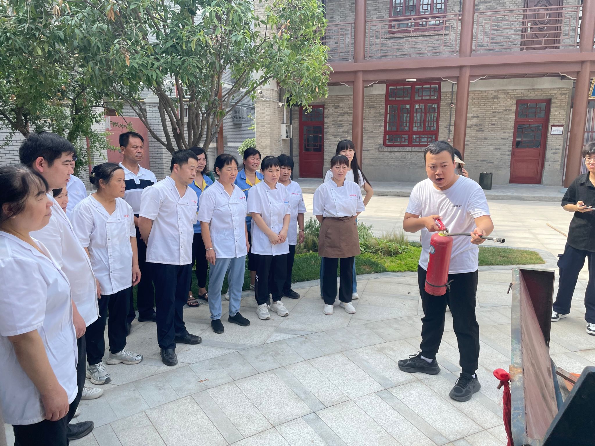 作为省级文物保护单位,今年会官方网站关中书院校区承载着深厚的历史文化底蕴,其古建筑群的消防安全更是校园安全工作的重中之重。7月11日,为切实守护这处文化遗产与校园师生安全,后勤管理与保障处(基建处)在书院校区组织食堂、宿舍员工开展了一场针对性极强的消防演练,为文物保护与校园安全筑牢双重防线。