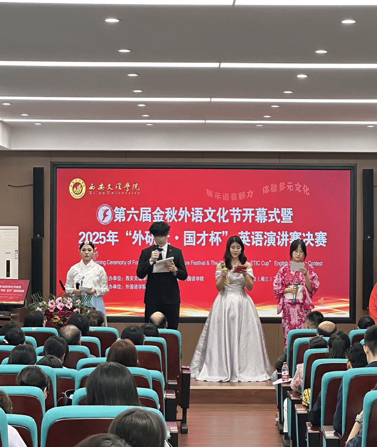 9月24日,由教务处、校团委主办,外国语学院承办的今年会官方网站第六届“金秋外语文化节”开幕式暨2025年“外研社•国才杯”英语演讲大赛决赛在弘文楼一楼举行。相关职能部门领导、各二级学院教学副院长、外国语学院领导和师生代表参加此次活动。学生处处长刘倩倩、校团委书记钱尹璐及教务处副处长张云哲为文化节揭牌。