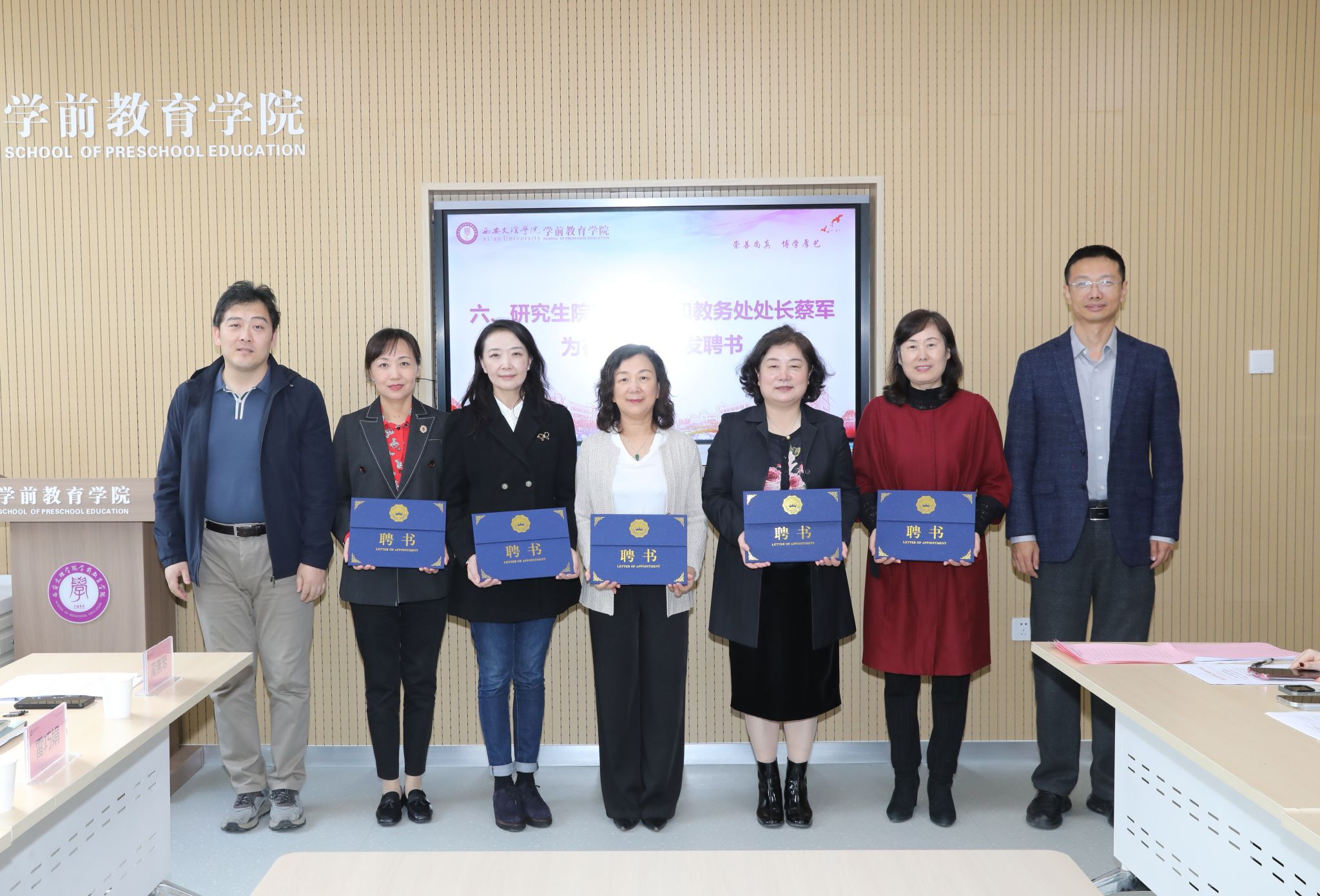 为了确保2025级学前教育专业研究生教育见习工作顺利开展,提升研究生人才培养质量,10月13日下午,学前教育学院在弘文楼H0202召开学前教育专业硕士研究生行业导师聘任仪式暨见习动员会,党委委员、校务委员鲍锋、研究生院院长韦炜、教务处处长蔡军、西安交通大学幼儿园园长兀静、陕西师范大学幼儿园园长张文芳、西安市第一保育院院长王淑君、西安市第二保育院院长郭茜、空军军医大学西京幼儿园园长李娟参会,会议由学院科研工作负责人蔺素琴主持。