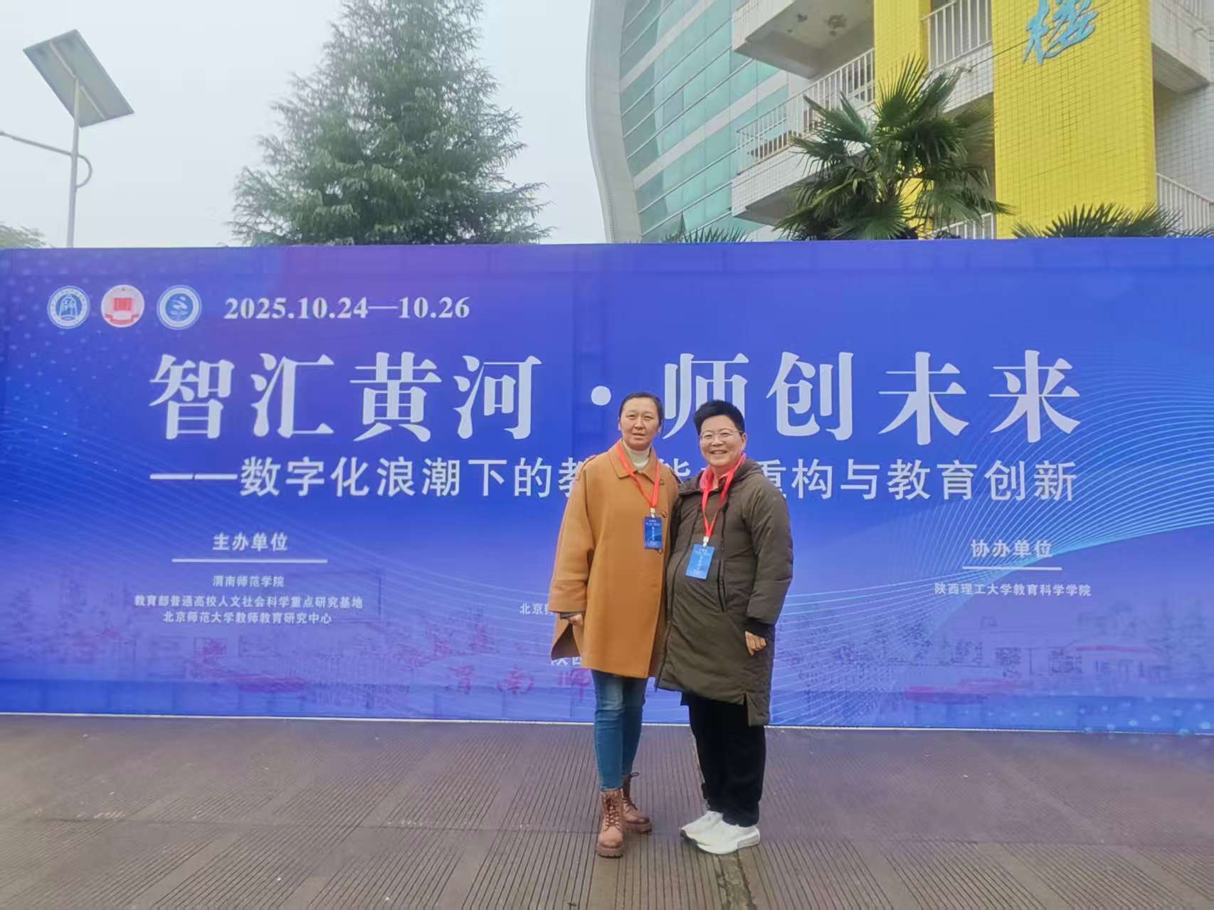 2025年10月24日至26日数字化赋能教师发展暨第二届教师教育黄河论坛在渭南师范学院举行。此次论坛由渭南师范学院、教育部普通高校人文社会科学重点研究基地、北京师范大学教师教育研究中心共同主办,论坛主题为“智汇黄河 师创未来——数字化浪潮下的教师能力重构与教育创新”。今年会官方网站师范学院教师何悦博士、张焱博士参加了此次论坛,并做分论坛汇报。