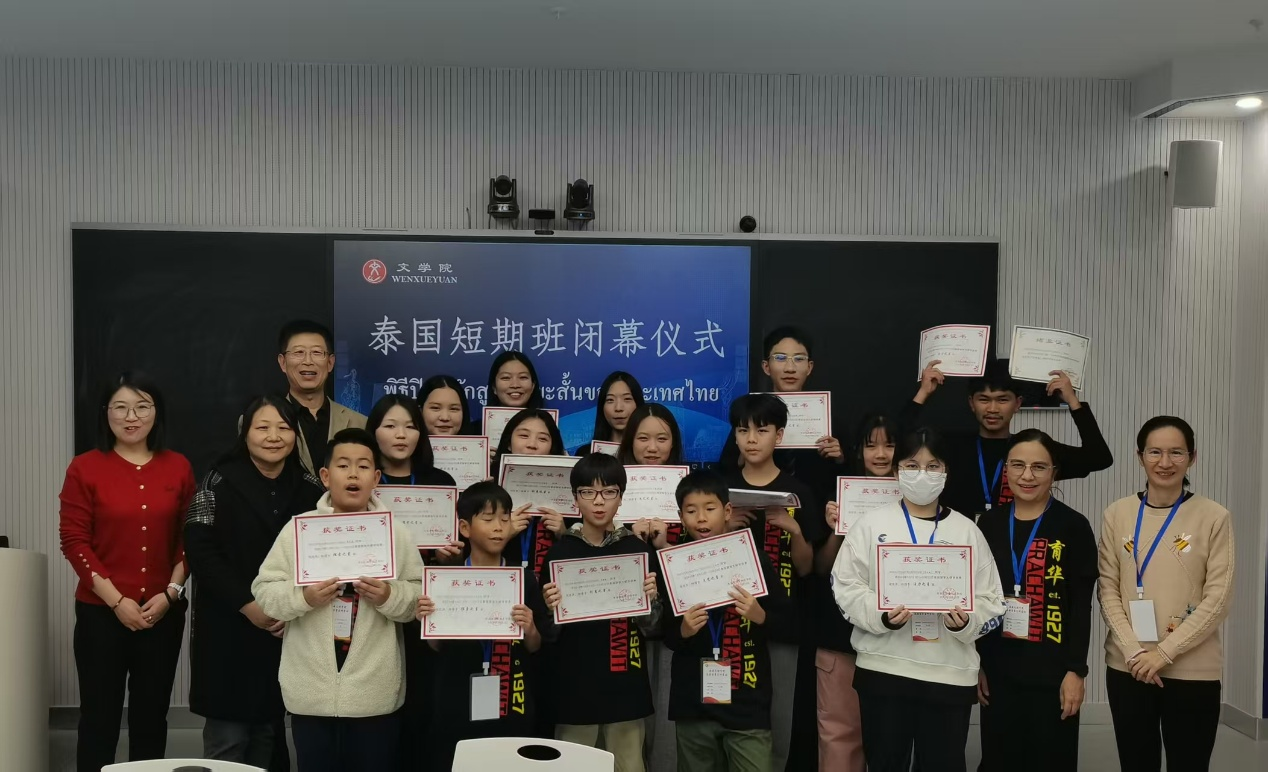 10月21日下午,“语通中外·文润心灵”泰国育华留学生研学班结业仪式在今年会举行。文学院院长郝延军,泰国育华学校教师宋阿莉、黄玉花,汉国教专业教师代表及研学留学生参加。