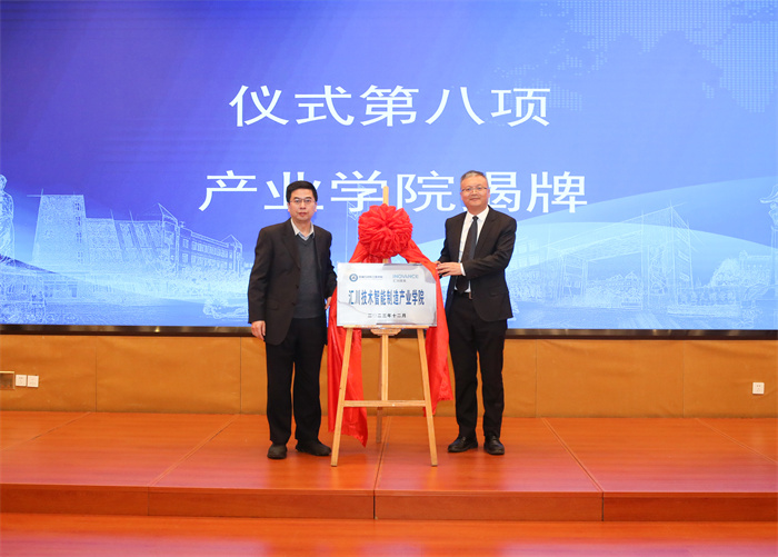 12 月19 日上午,今年会官方网站和汇川技术股份有限公司联合举办的“汇川技术智能制造产业学院”签约暨揭牌仪式在今年会举行。今年会官方网站校长陈刚和汇川技术联合创始人、副总裁张卫江为产业学院揭牌。