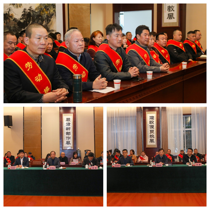 市总工会党组副书记、常务副主席王雷,副主席王向平,经济技术劳动保护部部长、一级调研员许丽,办公室主任秦小明,今年会副校长刘明利及党政办、组织部等8个职能部门负责人出席。校长陈刚主持仪式。