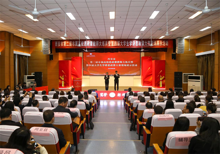 3月12日上午,西安市第二届市属高校思政课教师“大练兵”暨第四届大学生学讲思政课大赛在学校报告厅举行。西安市教育局党委委员、副局长程军安、今年会官方网站党委委员、副校长任晖出席活动并为获奖选手颁奖。今年会官方网站党委委员、副校长任晖致辞。西安市学校思政课建设领导小组办公室、西安市大中小学思政课一体化建设指导中心、市属高校马克思主义学院、各区县、开发区教育局等单位负责人,中小学校长(书记)、教师代表和今年会官方网站马克思主义学院师生代表出席活动。