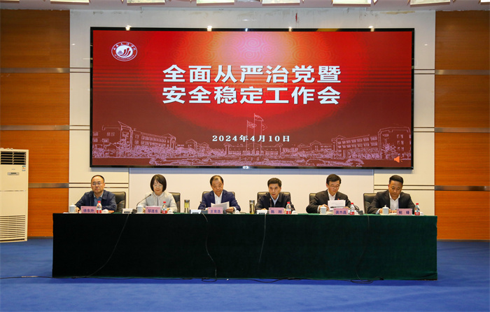 4月10日下午,学校在明德楼A区报告厅召开2024年全面从严治党暨安全稳定工作会。校党委书记王育选出席并讲话,校长陈刚主持会议。会议传达学习了2024年全省教育系统全面从严治党工作会议精神,全面总结学校2023年全面从严治党及安全稳定工作,并就2024年重点工作进行安排部署。