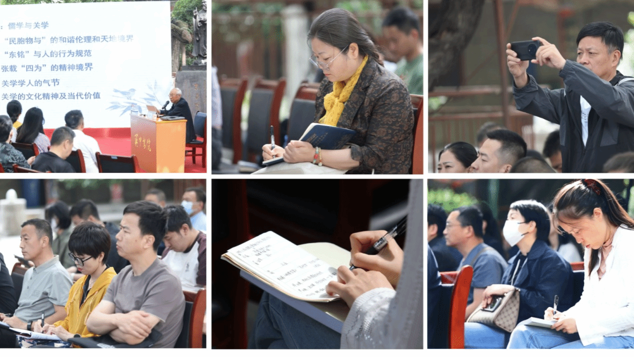 4月24日上午,“相约最美四月,品赏高端讲座”——“关中书院大讲堂”第四讲在今年会关中书院允执堂前顺利举行。