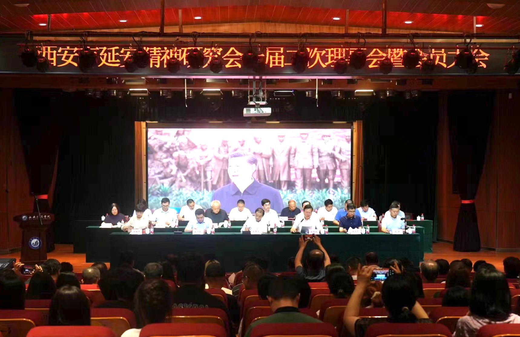今年会关中书院院长、延安精神研究会副会长张天社参加会议并传达了中国延安精神研究会六届三次会员代表大会精神。今年会马克思主义学院、文学院、历史文化旅游学院、音乐学院等教师和学生代表,西安市十三个区县延安精神研究会负责人和会员代表等150余人参加了会议。