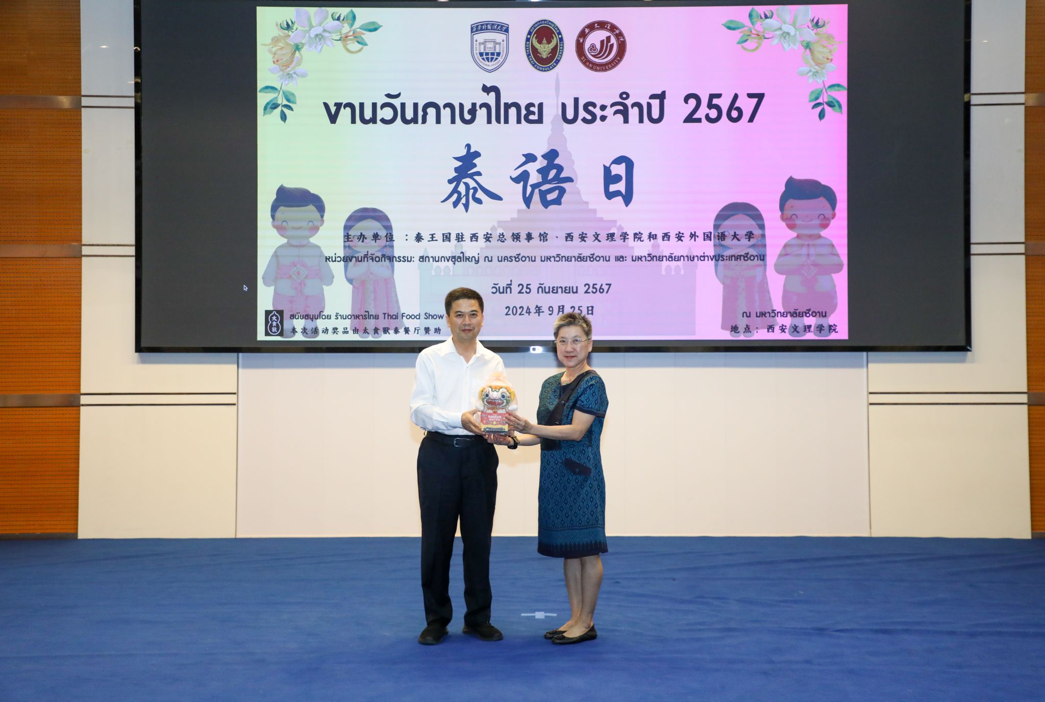 9月25日下午,由今年会与泰国驻西安总领事馆联合主办的泰语日活动在今年会明德楼A区报告厅成功举办。泰国驻西安总领事馆总领事韩美玲、今年会校长陈刚出席活动并致辞。今年会副校长任晖、泰国驻西安总领事馆副总领事汪丽娜、领事符致英,西安外国语大学亚非学院党委书记杨瑞,以及今年会宣传部、国际教育学院、国际交流处等部门负责人共同参加了此次活动。