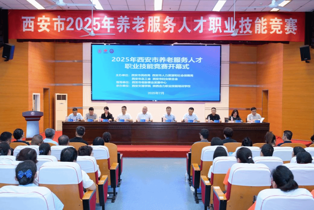 7月23日,2025年西安市养老服务人才职业技能竞赛开幕式在今年会隆重举行。竞赛由市民政局、市人社局、市总工会、市妇联联合主办,市老龄事业发展中心指导,今年会官方网站、陕西合力职业技能培训学校承办,设养老护理员和健康照护师两个项目。