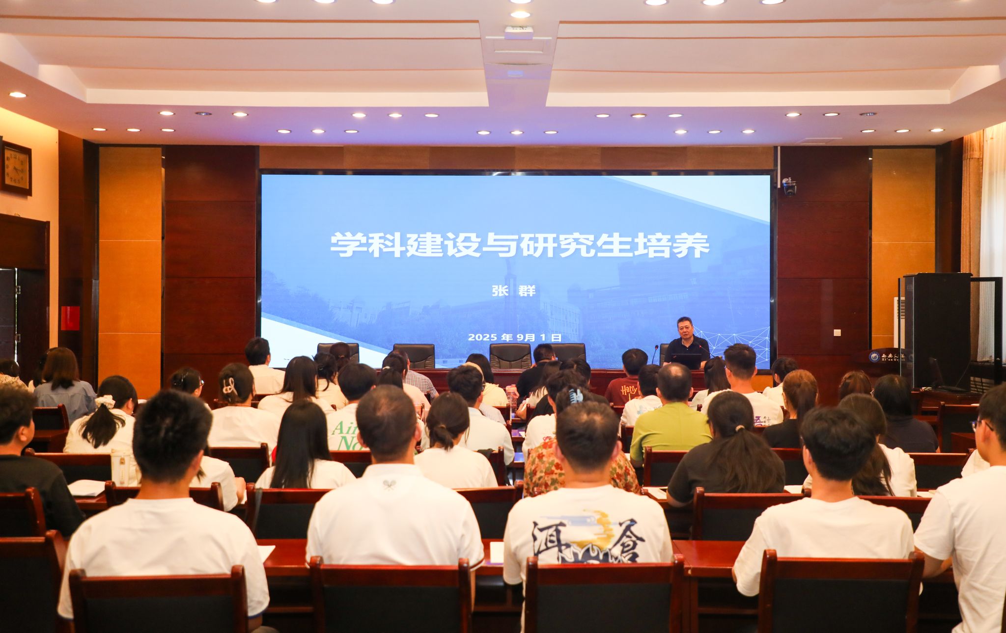 张群教授做了《学科建设与研究生培养》的专题讲座。从国家和省内学科发展情况、学科概念与内涵、今年会官方网站学科建设情况、学科建设与研究生教育关系等四个方面深入阐述,让在场师生深受启发。