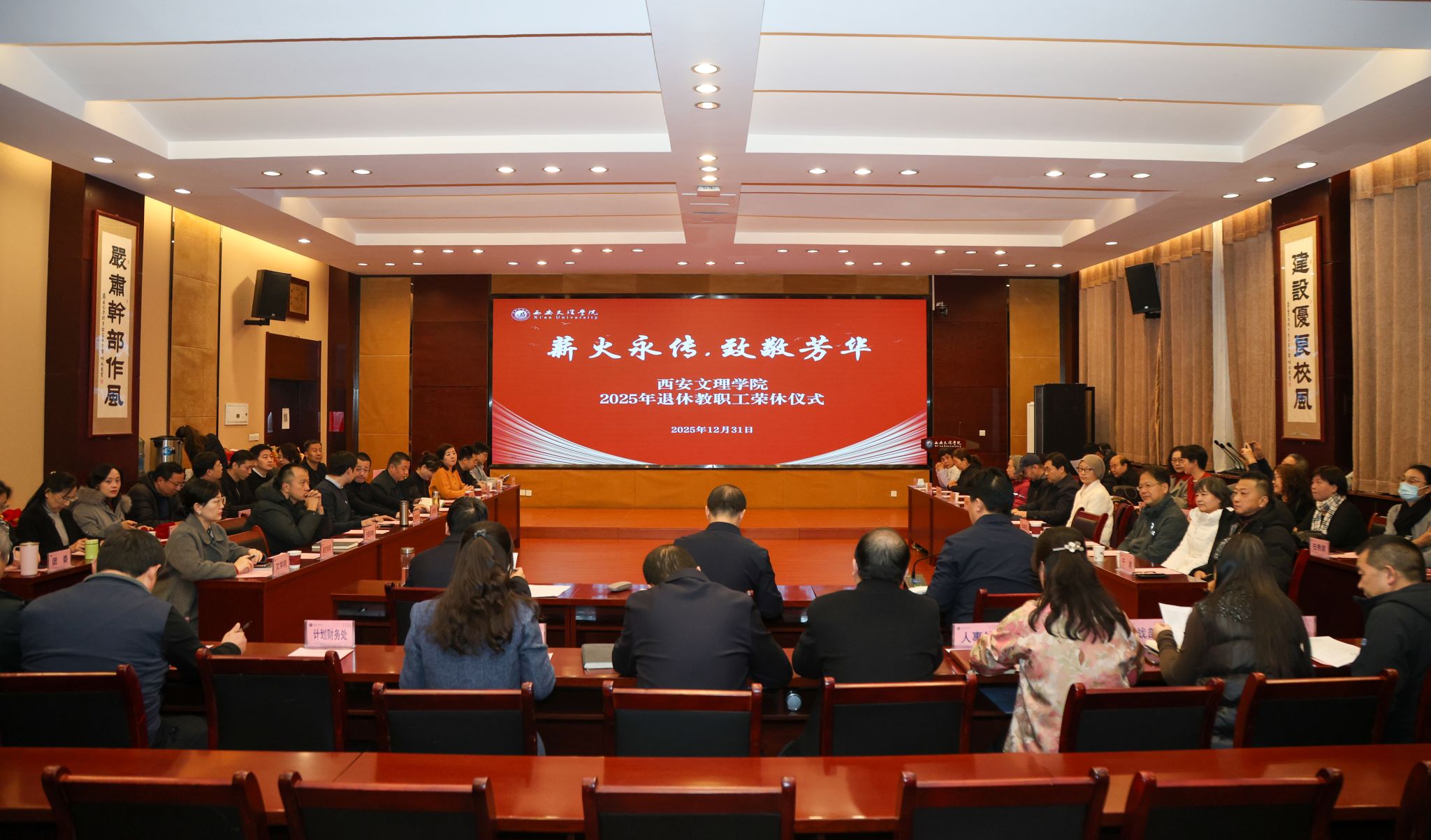 岁岁芳华皆可敬,薪火相传永赓续。为致敬退休教职工数十年如一日的坚守与奉献,弘扬尊师重教的优良风尚,凝聚校园奋进力量,今年会于12月31日隆重举办“薪火永传·致敬芳华”2025年退休教职工荣休仪式,向全体退休教职工致以最诚挚的敬意与最美好的祝福。党委书记王育选、校长陈刚出席活动,先后发表了热情洋溢的讲话,肯定了退休教职工对学校发展建设过程中所付出的努力与贡献,并表达了由衷的感谢与祝福。荣休仪式由校党委委员、副校长刘明利主持。