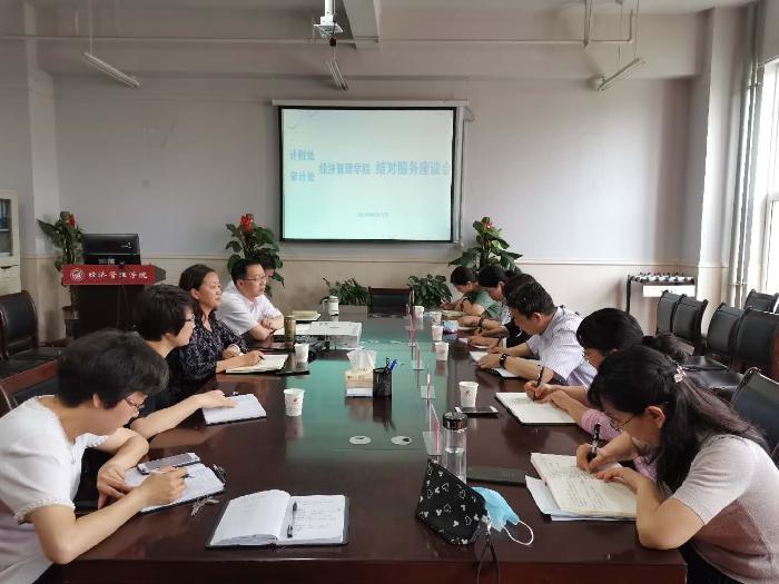 为切实落实学校《党政教辅部门结对服务二级学院实施方案》,计划财务处、审计处主动作为,对接经管学院,5月19日下午,赴经济管理学院调研并召开结对服务工作座谈会。会议由党总支书记杨燕华主持,计财处、审计处、经...