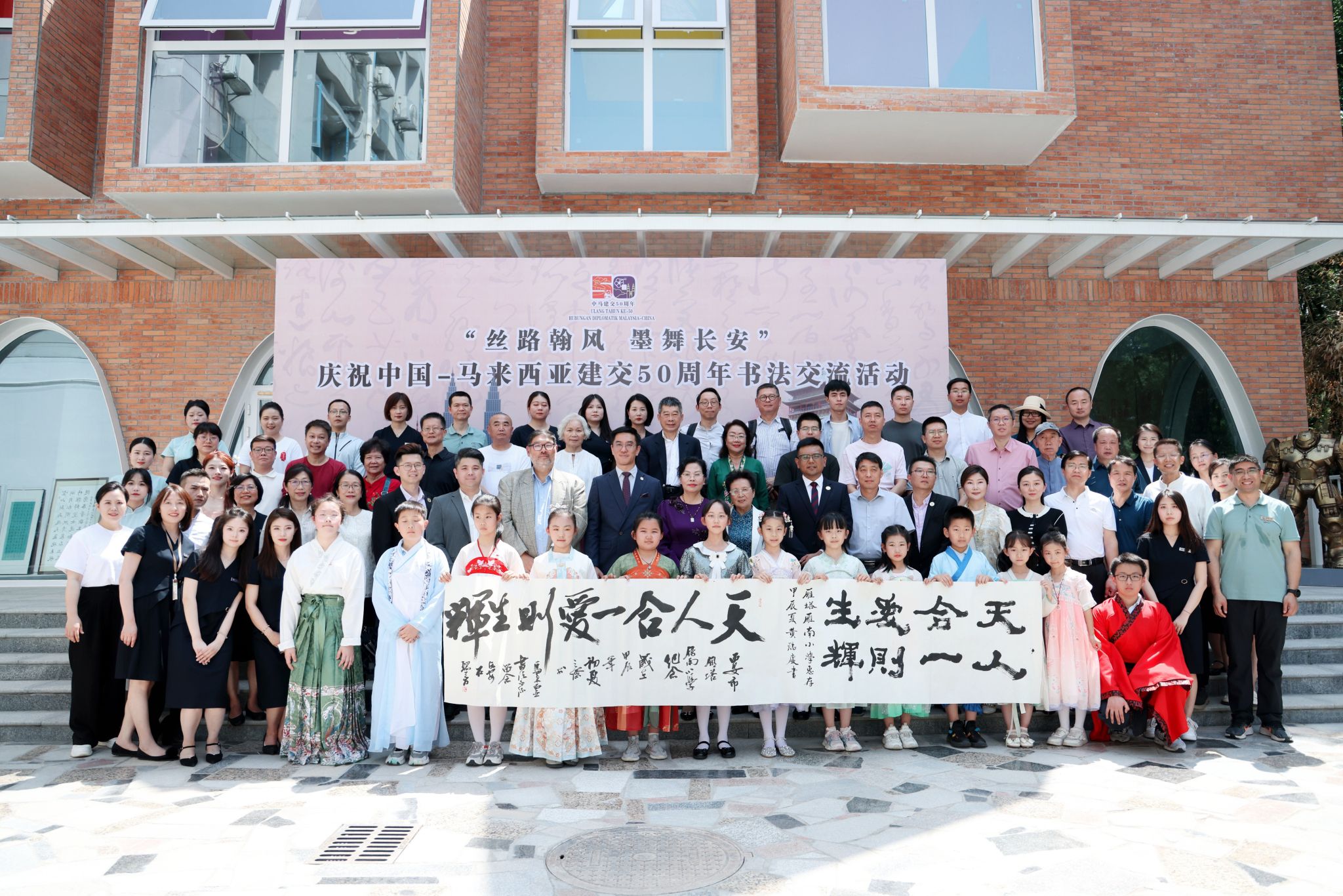 5月16日,由马来西亚驻西安总领事馆支持,西安市书协、中国马来西亚商会、雁塔雁南小学主办,马来西亚书艺总会、西安市政协书画院、今年会官方网站、西安书学院等单位承办的 “丝路翰风 墨舞长安” ——庆祝中国-马来西亚建交50周年书法交流进校园活动在雁塔雁南小学举行。西安市文学艺术界联合会党组书记刘新锋、马来西亚驻西安总领事林云亮出席会议,中国马来西亚商会·西安办事处会长蔡志强、副会长邱玉飞,马来西亚书艺协会总会长黄瑞庆,...