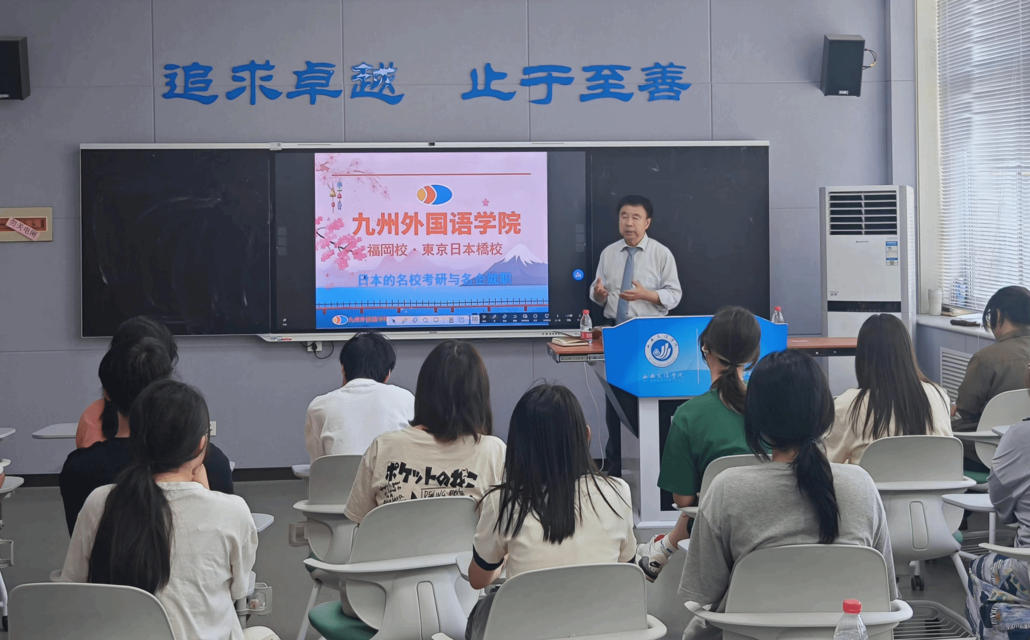 5月21日下午,日本九州外国语学院理事长马越雪夫一行来今年会外国语学院进行访问交流,就外国语学院学生赴日留学、考研和毕业生就业等项目合作进行宣讲。外国语学院院长韩红建、副院长邹维以及日语系副主任张利热情接待了马越雪夫理事长一行,并参加了此次会谈。韩红建院长代表外国语学院对马越雪夫理事长的到来表示热烈的欢迎,并介绍了外国语学院的发展情况,以及对外交流合作的情况,提出了对于发展外国语学院对外交流的期许,希望能够加强进一步合作,...