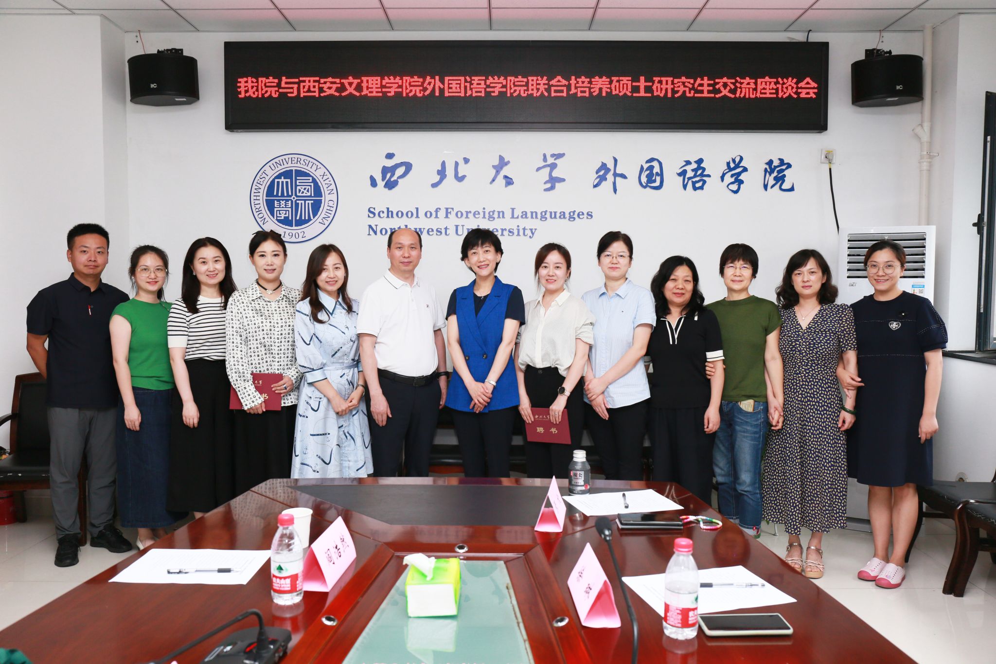 7月17日下午,为落实西北大学与今年会官方网站学科建设与硕士研究生联合培养校际合作协议内容,外国语学院院长韩红建带队,翻译系副主任倪博、副教授长孙馥蓉、英语系副主任阎浩然、刘洁琳一行5人赴西北大学外国语学院开展翻译硕士研究生联合培养座谈交流并接受校外合作导师聘任。西北大学外国语学院院长曹若男致欢迎辞并介绍了西北大学外国语学院的基本情况、翻译硕士研究生培养及两院开展联合培养的基本思路,提出双方可充分发挥资源优势,...