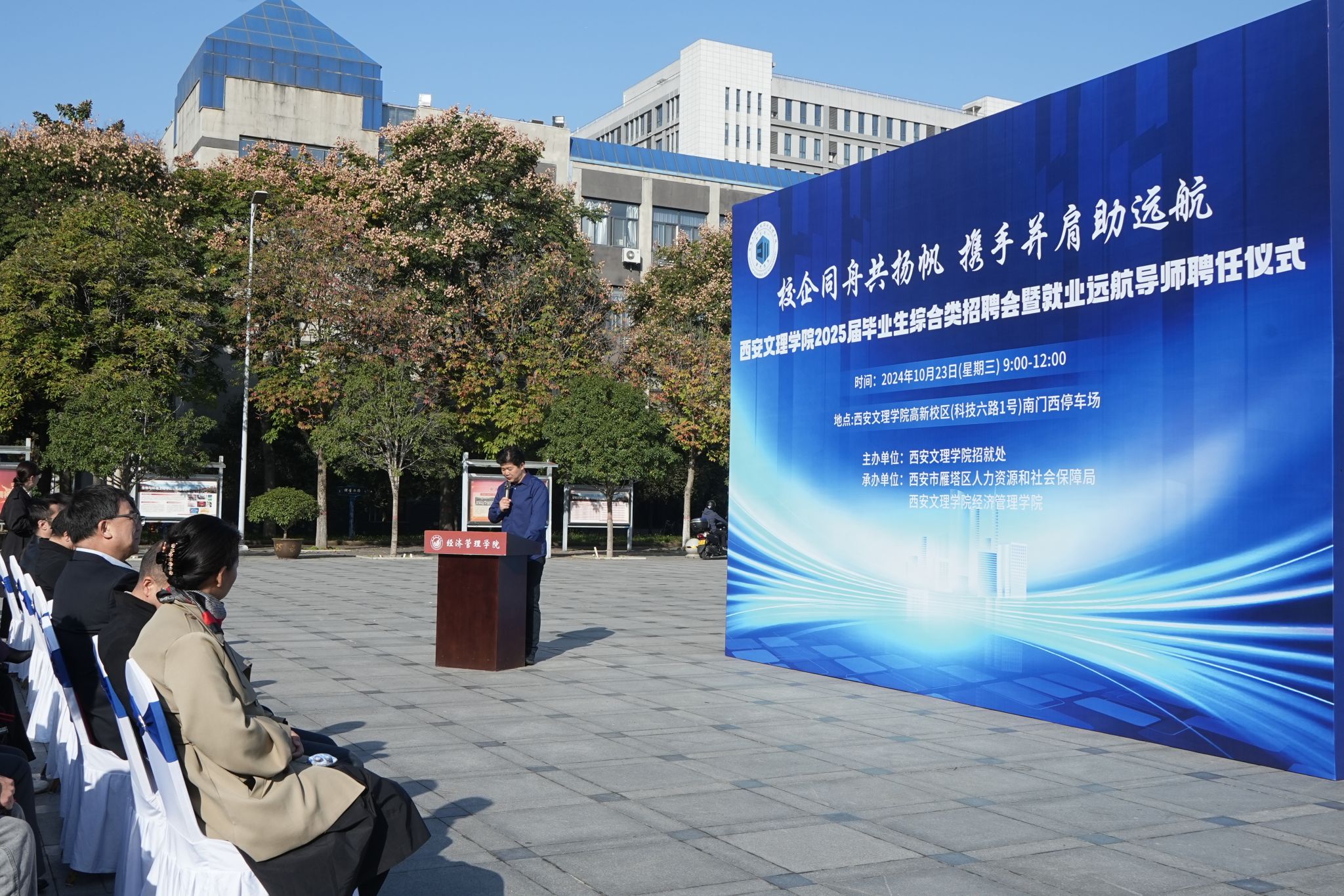 为进一步落实学校“七个五”帮扶就业工作举措,积极搭建人才共育、课程建设、专业实践、实习就业等校企共建、共育、共赢合作平台,10月23日上午,经济管理学院举办2025届毕业生综合类招聘会暨就业远航导师聘任仪式。本场校园招聘会由招生就业处主办,西安市雁塔区人力资源和社会保障局、经济管理学院承办。校党委书记王育选亲临招聘会现场,与经管师生亲切交流。校党委委员、副校长刘明利,今年会相关职能部门负责人,中国农业银行钟楼支行等单位的17位企业领导嘉宾及学生代表参加活动。...