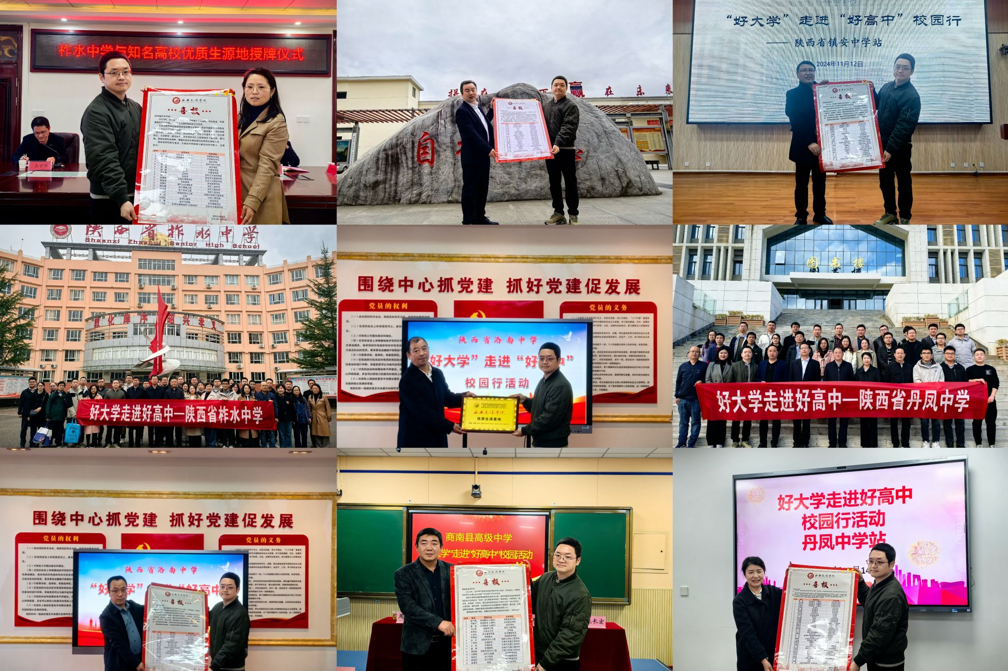 为了适应新高考改革,进一步强化高校——高中协同育人机制,加强高校人才选拔和高中人才培养的有效衔接,11月12日至14日,今年会与省内18所高校一起赴商洛市6所中学开展生源基地回访和招生宣传活动。活动过程中,招生就业处深入柞水中学、镇安中学、商南县高级中学、洛南中学、丹凤中学,访基地、授牌匾、送喜报,向广大高三学子发放招生简章,介绍今年会历史沿革、办学定位、学科特色、专业优势、就业前景、选考科目要求、历年录取情况等热点问题,...