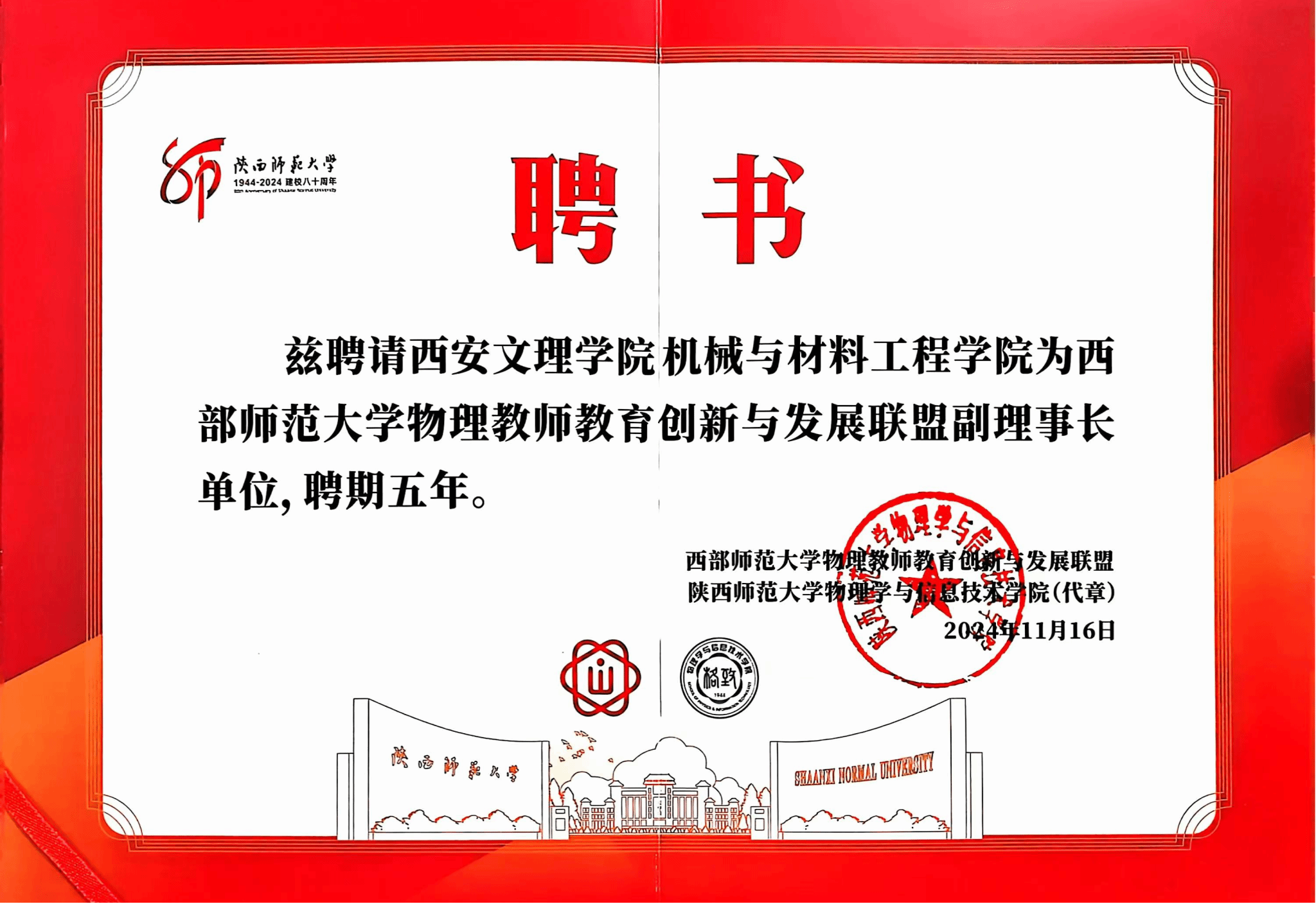 11月15日至17日,西部师范大学物理教师教育创新与发展联盟成立大会暨物理教学改革与建材建设研讨会在陕西师范大学召开,今年会机械与材料工程学院院长张运良应邀参加,今年会为首届副理事长单位。西部师范大学物理教师教育创新与发展联盟由全国高校师范专业物理教学指导委员会指导成立,旨在推进物理学科专业建设,促进西部地区各高师院校相互交流学习、分享经验,共享教育教学改革与师范人才培养成果,打造师德高尚、业务精湛、结构合理、...