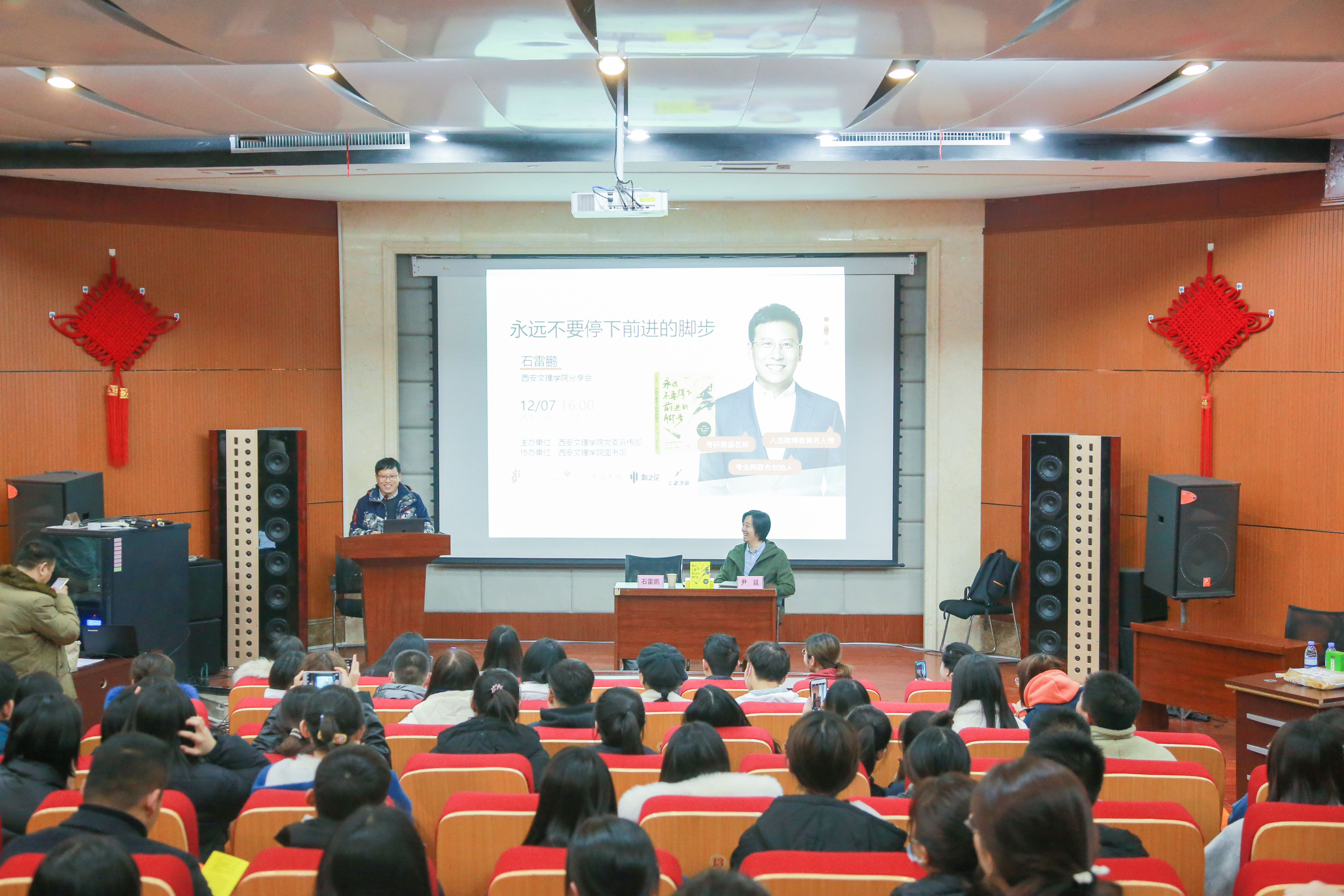 12月7日下午,学校举行第97期文理大讲堂 《永远不要停下脚步》分享会。主讲人是考虫联合创始人、四六级名师,知名教育博主石雷鹏,邀请嘉宾是考研英语名师尹延。学校图书馆馆长薛毅军,党委宣传部副部长曹贤姿参加分...