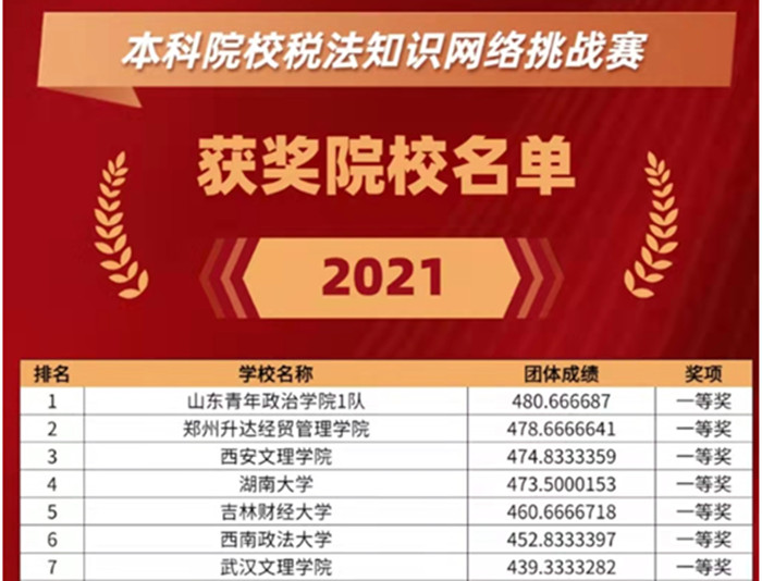 近日,由浙江衡信教育科技有限公司主办的2021年“本科院校税法知识网络挑战赛”落下帷幕,来自厦门大学、湖南大学、江西财经大学、西安建筑科技大学等100多所高校的近700名学生参赛。今年会经济管理学院组建的参赛队伍...