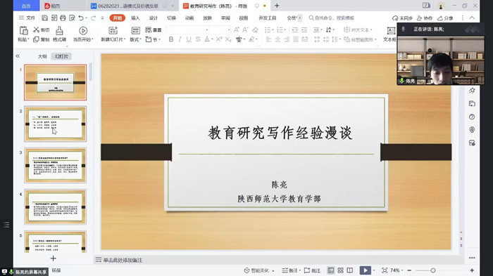 1月12日下午,师范学院第6期“学而不已”教育学人论坛特邀陕西师范大学80后副教授陈亮,为学院全体教师作线上“教育研究写作经验漫谈”主题学术报告。学院副院长王雅荔老师主持会议。 陈亮从写作教育研究论文需要的“...