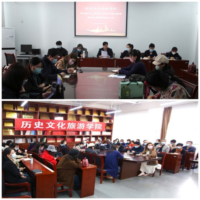 4月1日下午,历史文化旅游学院召开专业技术人员岗位考核动员会,学院领导班子成员和全体教职工参加会议,会议由党总支书记刘倩倩主持。 会议根据学校党政工作要点,结合学院工作实际下达了教职工年度任务清单。教学副...