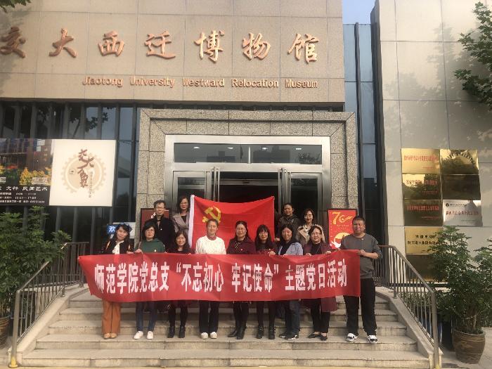 按照校党委关于“不忘初心,牢记使命”主题教育“七个一”工作要求,10月19日下午,党委宣传部党支部全体党员来到八路军西安办事处纪念馆开展“不忘初心、牢记使命”主题党日活动,校党委副书记、副校长李忠良以普通党...